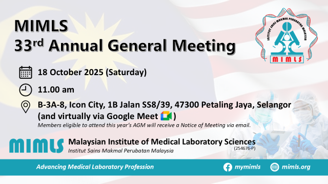 The 33rd Annual General Meeting (AGM) of MIMLS this year will be held on 18 October 2025 (Saturday), 11.00am and conducted hybrid (both physical and virtual) from broadcast venue at B-3A-8, Icon City, 1B Jalan SS8/39, 47300 Petaling Jaya, Selangor.